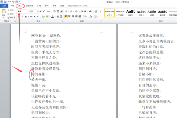 1、打开需要操作的WORD文档,光标停在需要分页的位置,点击工具拉的“插入”。