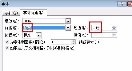 4.第四步:将字符设置为加宽,磅值为1磅,单击“确定”按钮。