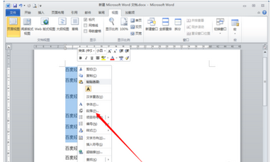 4.接着回到文档里面,继续选中需要设置的文字,点击鼠标右键,选择段落。