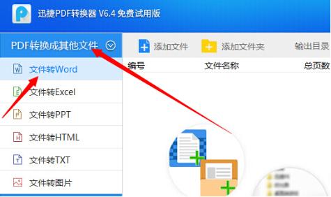 第二步:双击打开pdf转换工具,点击选择“文件转word”。pdf转换器同时也是一款excel转换成word转换工具,它可以实现多种不同office文件之间的转换工作,比如:word、excel、ppt。如下图: