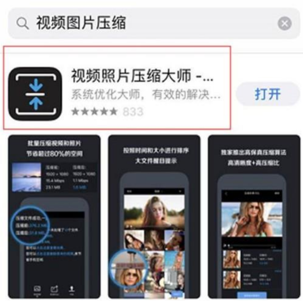 3、输入“视频图片压缩”后点击搜索会看到“视频照片压缩大师”
