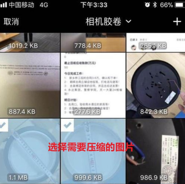 4.然后软件页面会自动跳转到相册的选择页面,此时点击选择需要压缩的照片。