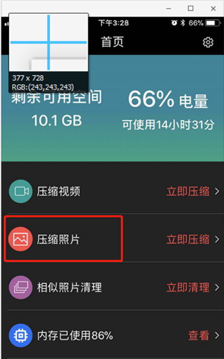 3.在软件的首页中,点击【压缩照片】这个功能选项。