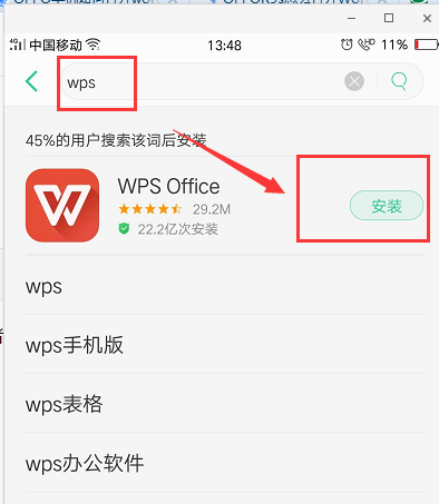 1:手机百度下载wps office,或者在百度手机助手内下载。