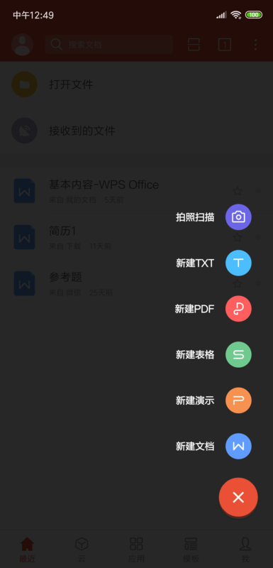 3:出了可以打开word文档以外,还可以自己创建word文档以及txt,PPT,doc演示文档。