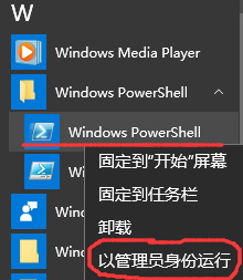 要卸载这些所有内置应用,就要用到Windows PowerShell,它是win10系统自带的一个应用,要打开它,就单击开始菜单中的“所有应用”,然后找到Windows Power Shell的文件夹,右键单击Windows PowerShell,然后单击以管理员身份运行,就打开了。