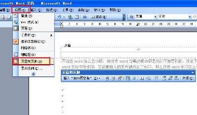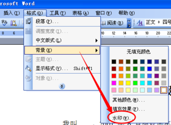 3、点首页的页眉——菜单栏(格式)---背景-----水印----确定