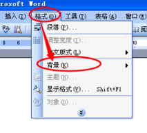 打开word2003,点击菜单栏的【格式】。选择背景。