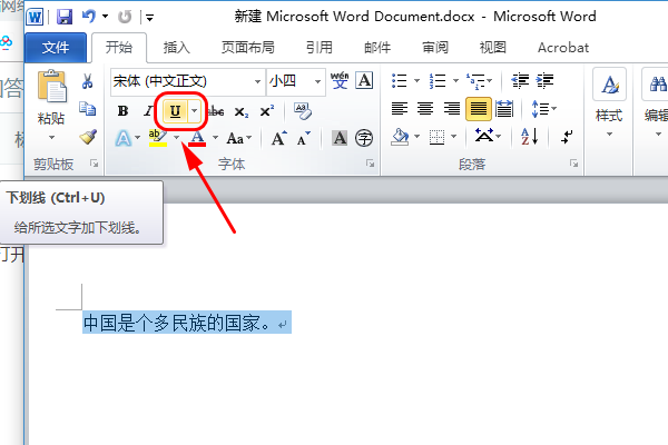 2、单击开始开始选项卡上的下划线按钮即可,如图所示。