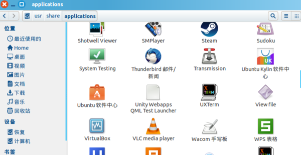 也可以用文件管理器,打开/usr/share/applications这个目录,所安装的软件都在这里啦。