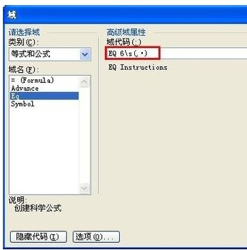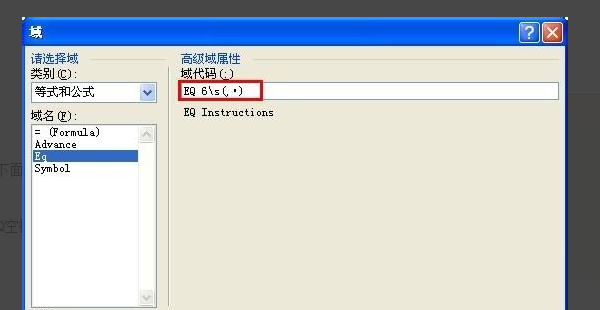 6,域代码内输入:EQ空格\o(5,\s\do10(•),\s\do12(•),\s\do5(—),\s\do7(—))