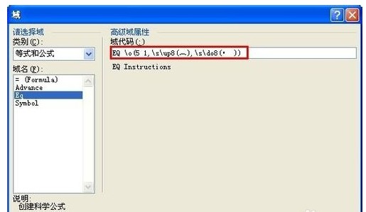 域代码内输入:EQ空格\o(5,\s\up8(•))
