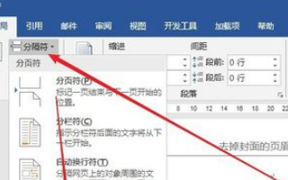 1、打开需要操作的WORD文档,在需要单独删除页眉的首页中插入分节符,在页面布局工具栏中找到并点击分隔符,并在其下拉选项中选择分节符“下一页”。