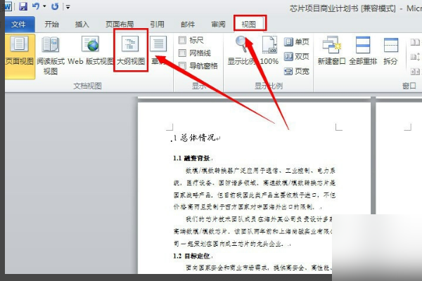 2、点击“视图”,点击“大纲视图”。