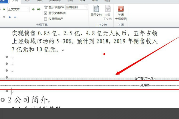 将你的word改成大纲视图,然后分节符就显示出来了,选中删掉即可。