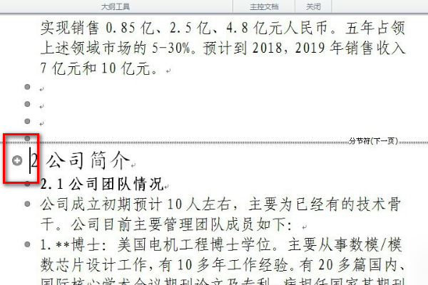 3、在文档中找到分页符的位置。