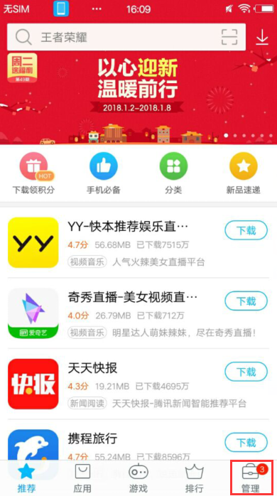 一、将下载的平台版本更新到最新版本。如:应用商店,可以进入应用商店-管理-设置-检测新版本更新即可。