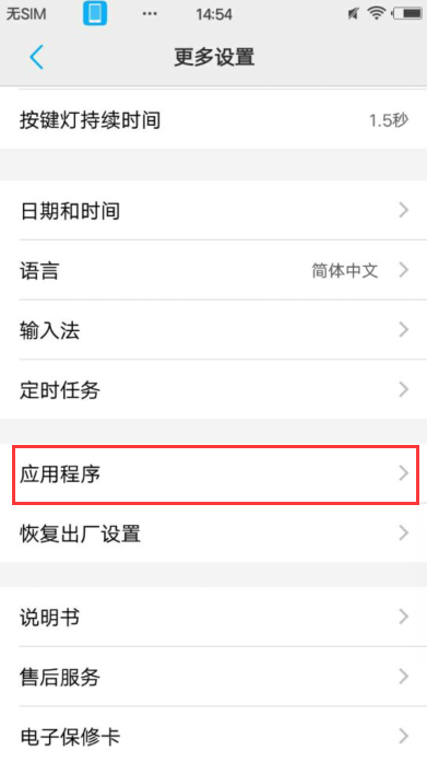 5,若“应用程序”图标本身找不到了,此图标无法隐藏、删除,可尝试备份重要数据恢复出厂设置,看是否显示;