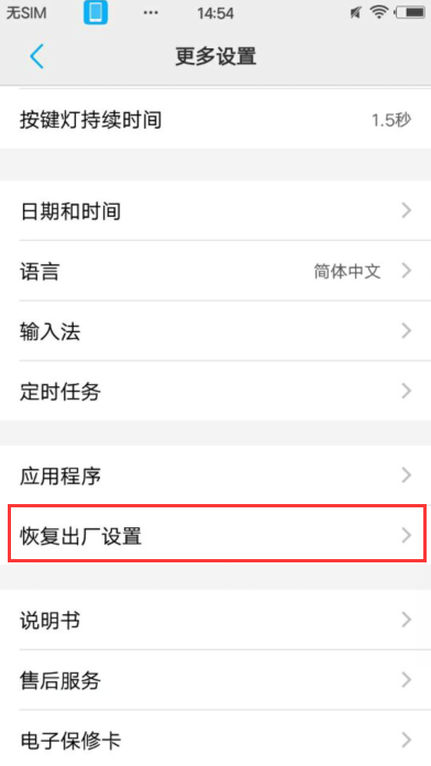 三、将手机还原所有设置使用。进入手机设置-更多设置-恢复出厂设置选择还原所有设置即可。