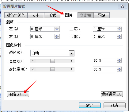 1、打开word文档,右击某张图片,选择“设置图片格式”、选择“图片”选项卡,点压缩。