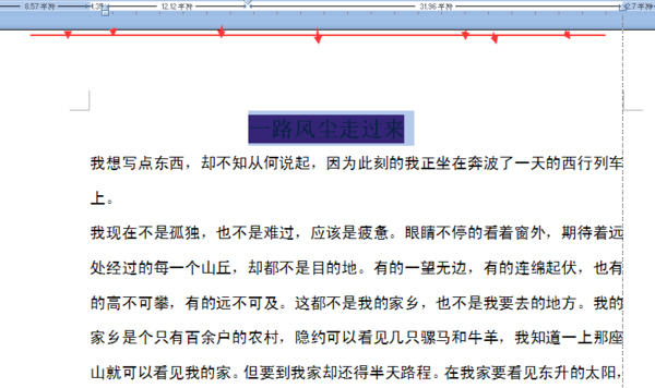 2、选中需定义制表位的行(一般选空行),用鼠标在横标尺上定义制表位。