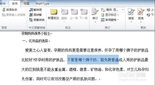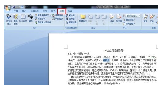 1、检查Word编辑器中是有‘审阅’菜单