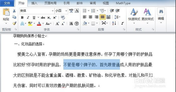 4、然后回到编辑页面,选中您要备注的文字