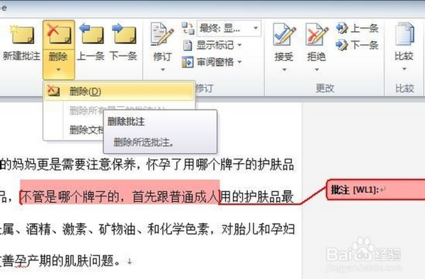 如果需要删除批注,那么只需要选中批注框,然后点击”删除批注“ ,批注即可删除,