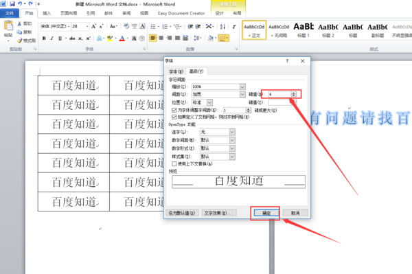 Word 表格横向的字间距,可在字体设置中调整。