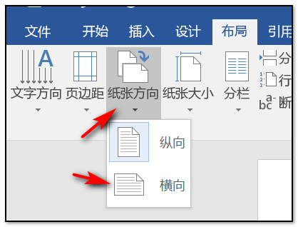2.点击纸张方向,就能看到里面有调整横向和纵向的选项。我们点击横向按钮。