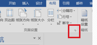 5.然后再点布局按钮,这个时候就不要去点纸张方向那个按钮了,而是旁边的一个指向右下角的按钮。如下面图中所示。