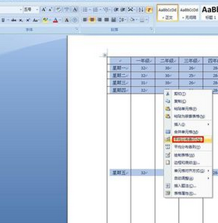 2.然后选择整个表格,并单击右键选择“平均分配各行”。