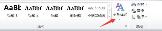 1、打开要设置样式的文档,点击“开始”菜单中的“更改样式”图标,如图: