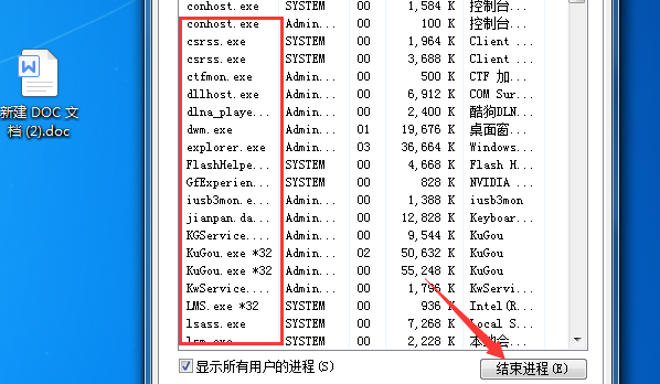 3、进入到进程页面以后,选择你要关闭的软件进程,然后点击【结束进程】就可以了。