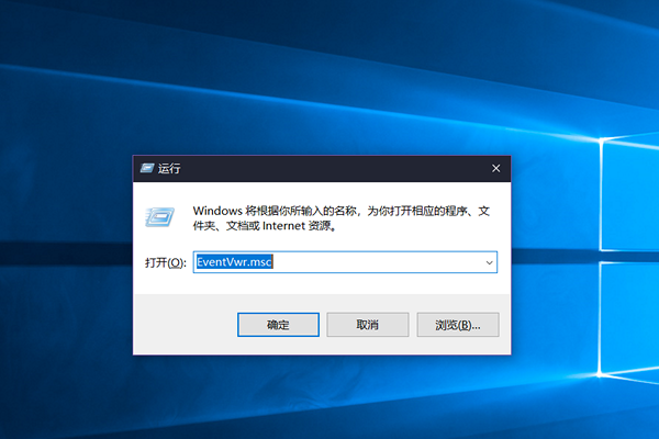 1、按下 “windows键+R”在开始-->菜单中输入"EventVwr.msc"。