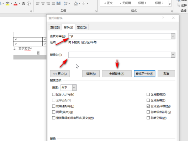 如果有连续的空段的话,一次替换不完,你可以多按几次“全部替换”,直到提示找不到替换的对象为止。