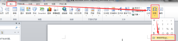 第二步:依次点击【插入】->“符号”组的【符号】->【其他符号】;