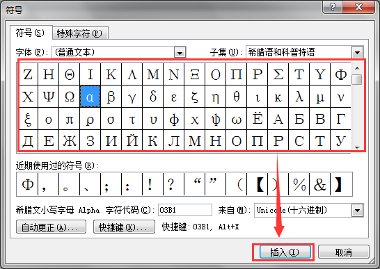 可以通过符号对话框输入这些特殊符号,操作步骤: