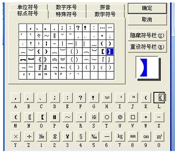 C:点击[确定]按钮,符号栏上显示的符号即为自定义设置。