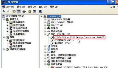 查看通讯线所使用的com端口为多少,并记住这个端口,本实例为com10。