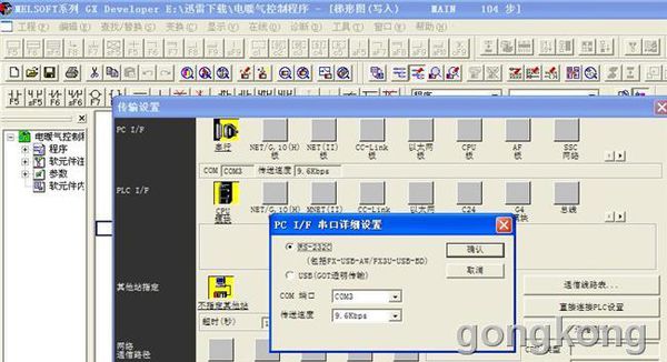 确定编程线连接正确后,检查连接端口是否正确。右键点击桌面上的“我的电脑”,打开“属性”接着打开“硬件”,“设备管理器”,最后打开“端口”,看看虚拟出个什么COM口来,记下,接着打开PLC编程软件,点击出“在线”菜单中的“传输设置”窗口。在PC I/F串口详细设置窗口的COM端口选项中设置成此前记下的那个COM口号。