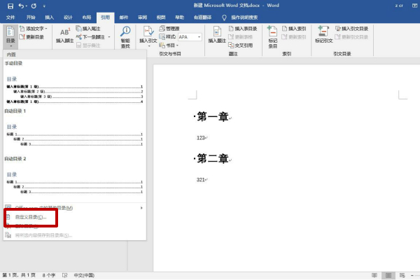2、菜单栏上的插入——引用——目录和索引,然后就自动生成目录了