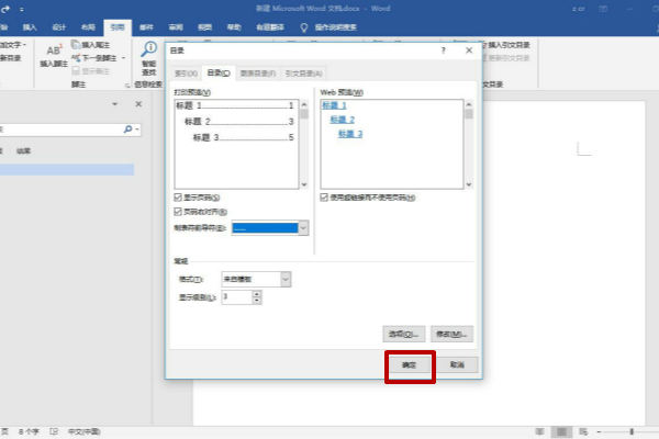 4、选择一个喜欢的制表符前导符样式,然后点击“确定”按钮即可创建目录超链接。