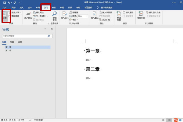 5、这时目录已经自动生成完毕,按住Ctrl然后用鼠标左键点击目录中的章节名即可跳转到章节。