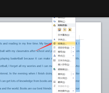 2、然后我们右键单击英文段落打开“段落”。