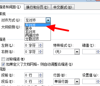3、然后我们在弹出来的窗口中点击打开“对齐方式”,选择左对齐,之后回车确定即可。