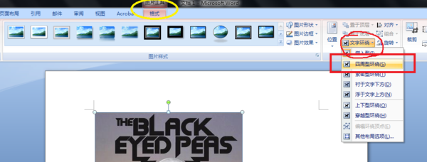 4、根据排版需要进行设置文字环绕的类型。