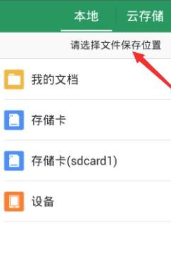 5、手机屏幕将出现以下画面,让你选择文件保存的位置,比如我们选择第一个“我的文档”。