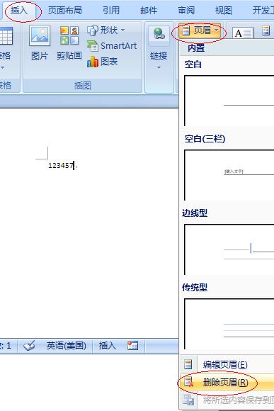 07版word页眉横线怎么删除