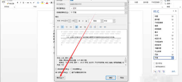 (1)在修改“页眉”样式时,勾选“修改样式”对话框中的“添至模板”复选框。